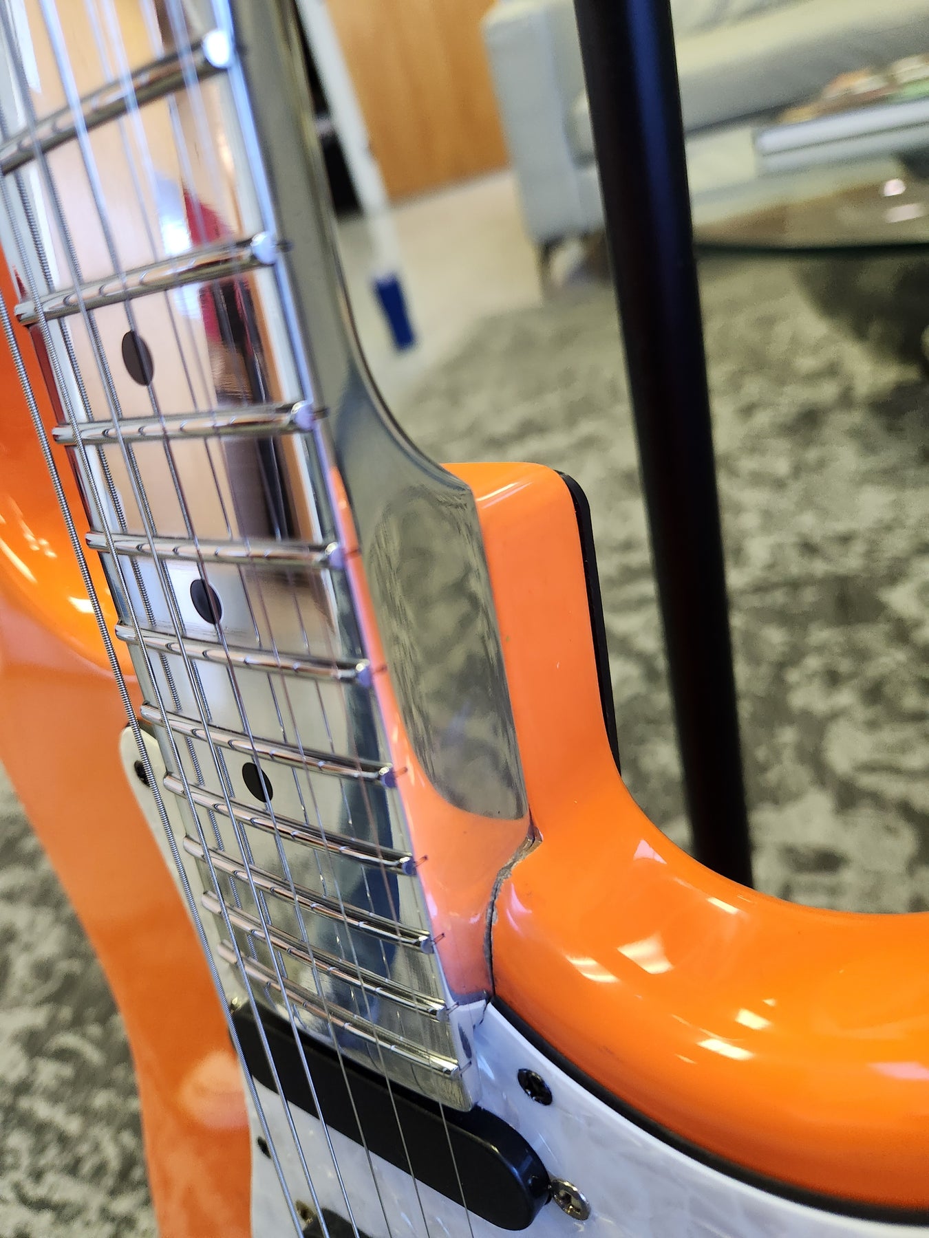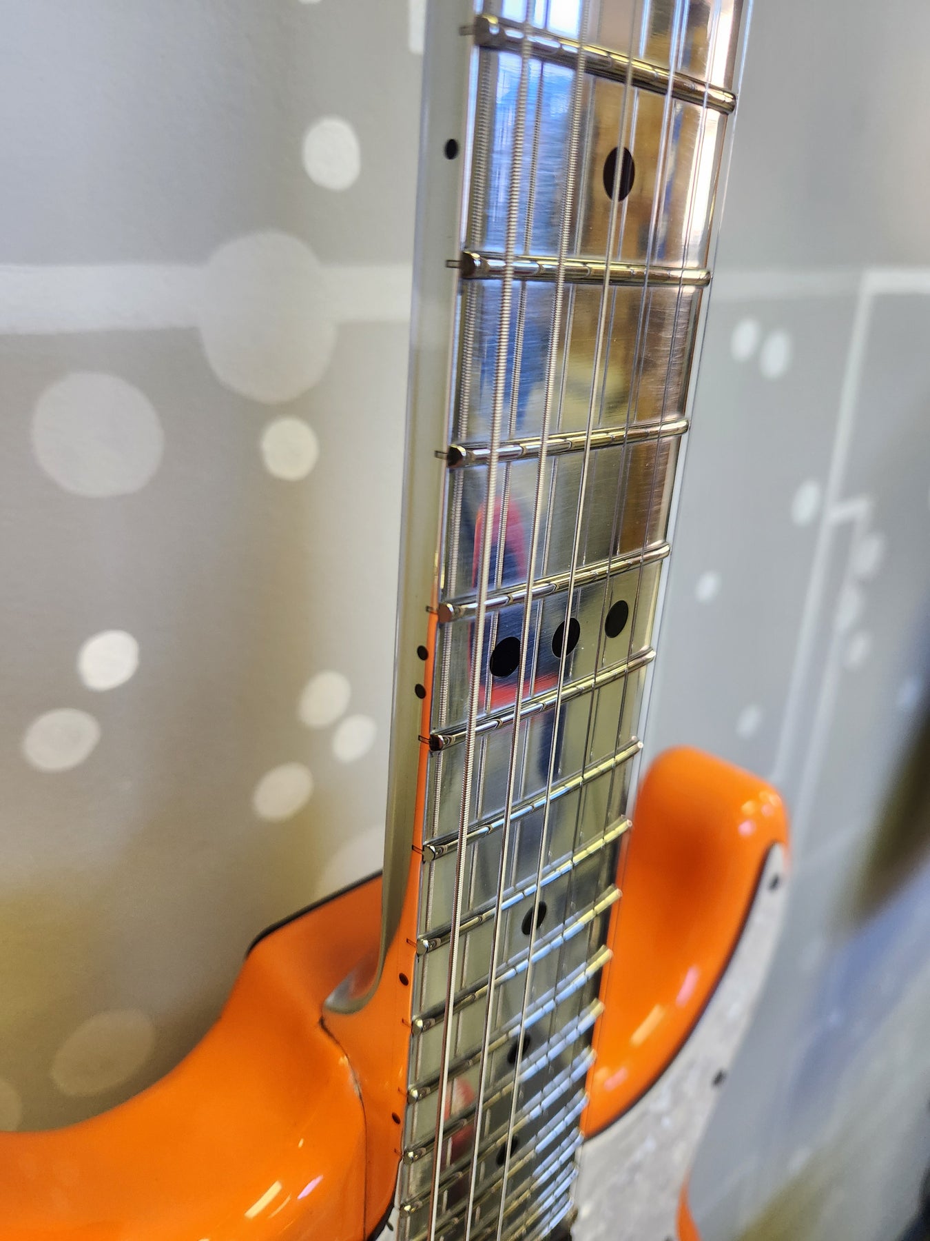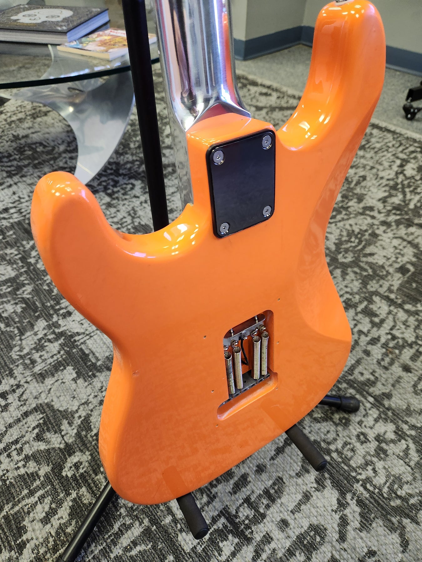 Squier body, stock trem with Graphtech Stringsaver saddles